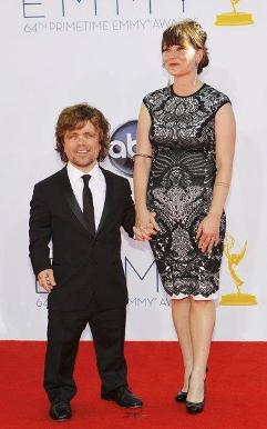 Peter Dinklage of the drama series "Game of Thrones" and his wife Erica Schmidt arrive at the 64th Primetime Emmy Awards in Los Angeles September 23, 2012.