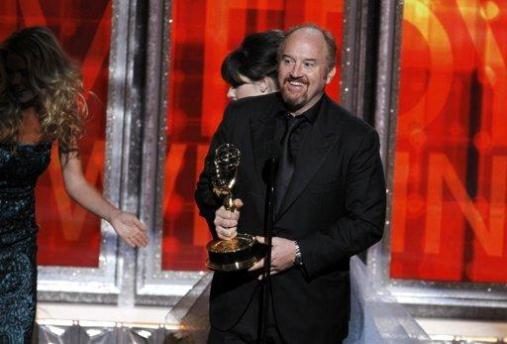Louis C.K. smiles as he accepts the award for outstanding writing in a comedy series for his show "Louie" at the 64th Primetime Emmy Awards in Los Angeles, September 23, 2012.