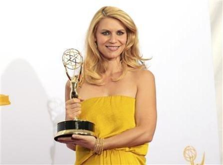 Claire Danes holds the Emmy award for outstanding lead actress in a drama series for her role in "Homeland" at the 64th Primetime Emmy Awards in Los Angeles September 23, 2012.