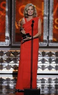 Jessica Lange accepts the award for outstanding supporting actress in a miniseries or movie for her role in "American Horror Story" at the 64th Primetime Emmy Awards in Los Angeles, September 23, 2012.