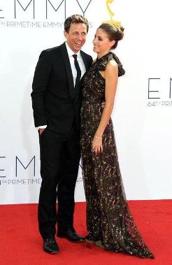 Seth Meyers, left, and Alexi Ashe arrive at the 64th Primetime Emmy Awards at the Nokia Theatre on Sunday, Sept. 23, 2012, in Los Angeles.
