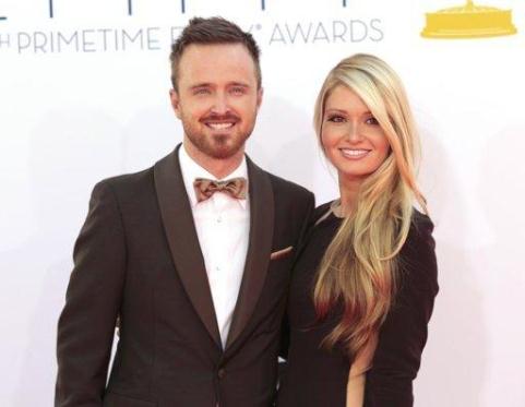 Actor Aaron Paul, of the drama series "Breaking Bad," and Lauren Parsekian arrive at the 64th Primetime Emmy Awards in Los Angeles September 23, 2012.
