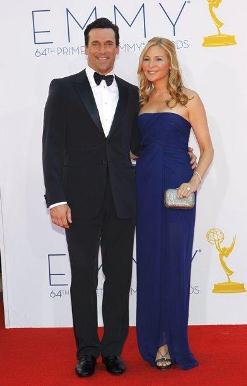 Actor Jon Hamm, from the drama series "Mad Men," and partner Jennifer Westfeldt, arrive at the 64th Primetime Emmy Awards in Los Angeles, September 23, 2012.