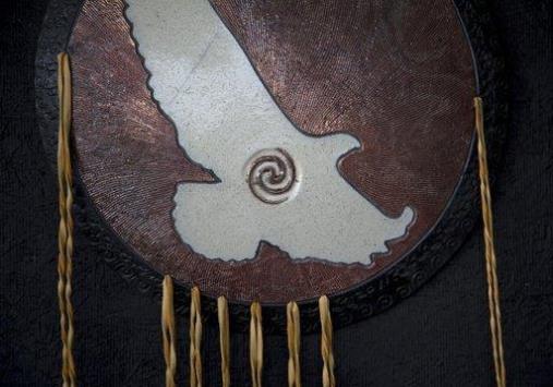 The figures are men who seem to be dancing and are naked except for exotic-looking feather head dresses. One appears to have a Mohican-style haircut.