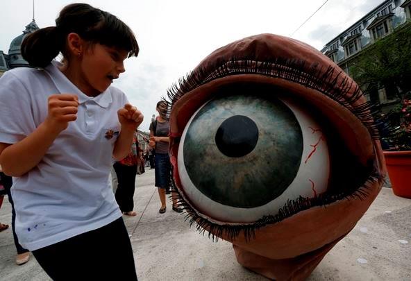 The woman, 23-year-old Yeni Sleidi, says she does it to amuse people and to give them a break from everyday stress.