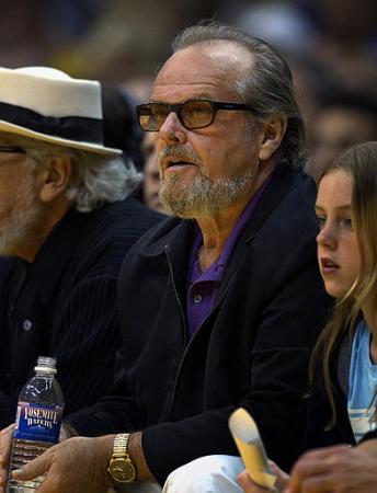 A bearded Jack Nicholson watches the action during the opener of the best-of-five first-round Western Conference playoff series between the Portland
