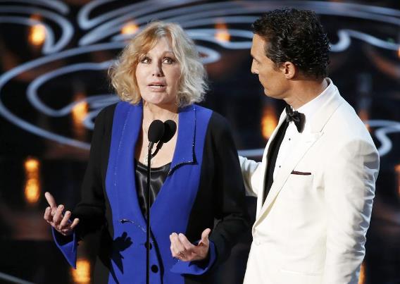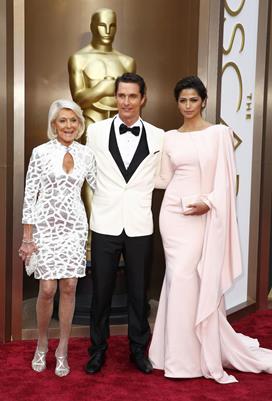 Matthew McConaughey, best actor nominee for his role in "Dallas Buyers Club", and his wife Camila Alves McConaughey and mother Mary Kathleen McCabe pose at the 86th Academy Awards in Hollywood, California March 2, 2014.