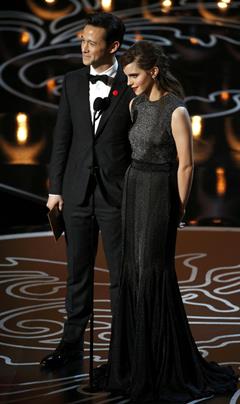 Actors Emma Watson and Joseph Gordon-Levitt present the award for visual effects at the 86th Academy Awards in Hollywood, California March 2, 2014.