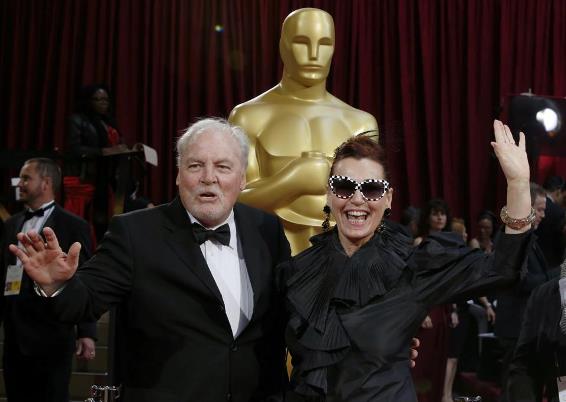 Actor Stacy Keach, from the film "Nebraska," and his wife Malgosia (R) arrive at the 86th Academy Awards in Hollywood, California March 2, 2014.