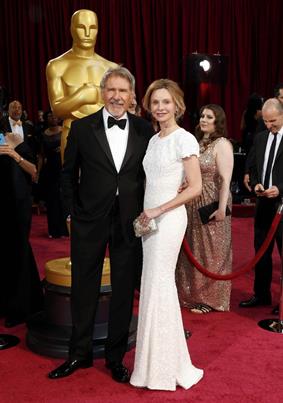 Presenter and actor Harrison Ford and his wife actress Calista Flockhart arrive at the 86th Academy Awards in Hollywood, California March 2, 2014.