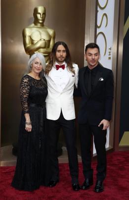 Jared Leto, best supporting actor nominee for his role in "Dallas Buyers Club", and his mother Constance Leto and brother Shannon (R) arrive at the 86th Academy Awards in Hollywood, California March 2, 2014.