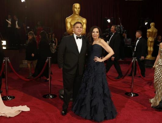 Best supporting actor nomineee Jonah Hill of the film "The Wolf of Wall Street" arrives with his mother Sharon Lyn Chalkin at the 86th Academy Awards in Hollywood, California March 2, 2014.