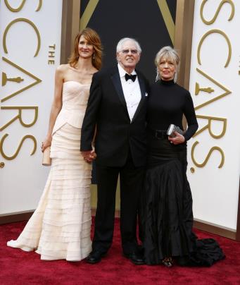 Bruce Dern, best actor nominee for his role in "Nebraska", and his wife Andrea Beckett (R) and daughter Laura Dern arrives at the 86th Academy Awards in Hollywood, California March 2, 2014.