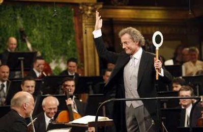 Maestro Franz Welser-Moest conducts the Vienna Philharmonic Orchestra with a trainman's trowel during the New Year's Eve Concert 2010 in Vienna's"Goldener Musikvereinsaal" ahead of the New Year's concert on January 1, in Vienna December 31, 2010.