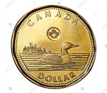 Photos: Canadians call their $1 coins Loonies, Queen Liz is on the heads side | Loon with young | the soon to be impeached a second time Looney president, unless he resigns first