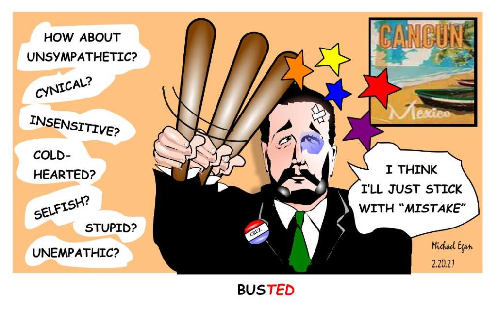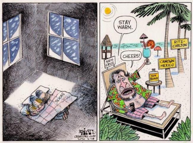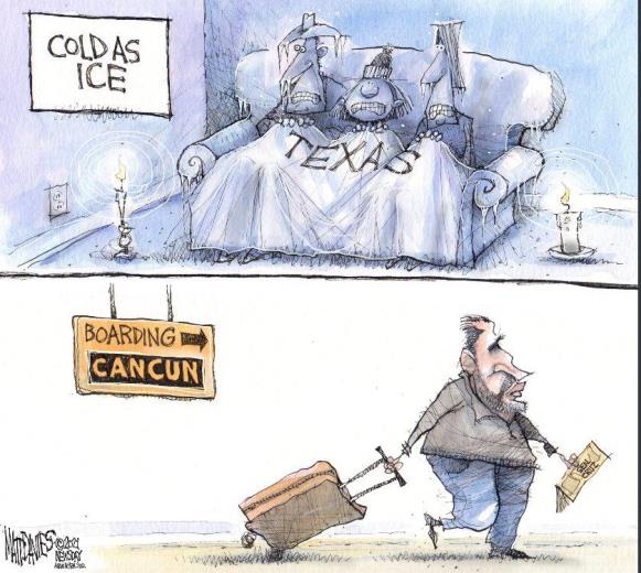 Texas Republican Sen. Rafael "Ted" Cruz (R-Bad Dad) is under fire for taking a trip to Cancun while his Texas constituents are suffering from a lack of electricity, heat and water.