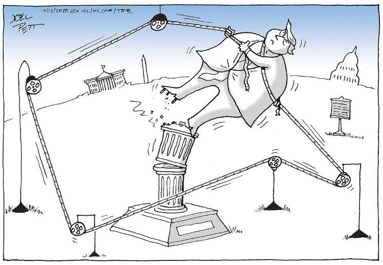 The Trump administration's own human rights record has come under scrutiny for its policy of separating immigrant children from their parents and holding them in cages and its response to nationwide protests driven by anger over police treatment of black Americans. Donald Trump (R-Grifter) has also sought to intimidate journalists, frequently referring to the press "the enemy of the people".