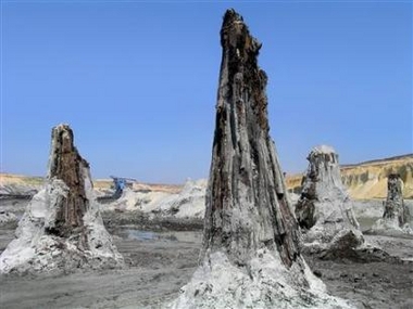 A group of fossilized swamp cypress trees or Taxodium trees which have been preserved in an open-cast lignite mine in the northeast of Hungary pictured here in this photo taken July 16, 2007. The trunks of the trees were preserved in a remarkable condition, standing at 4-6 metres tall and 1.5-3 metres in diameter just as they were in the late Miocene geological period 8 million years ago.