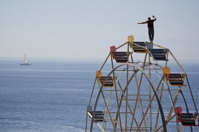 Nik Wallenda practices walking on top of the ferris Wheel at the Santa Cruz Beach Boardwalk, Friday, April 15, 2011 in Santa Cruz, Calif. Wallenda, a seventh generation member of the legendary "Great Wallendas" circus family, is scheduled to kick off the Santa Cruz Beach Boardwalk's Spring Break with two jaw dropping stunts on Saturday, April 16, 2011.