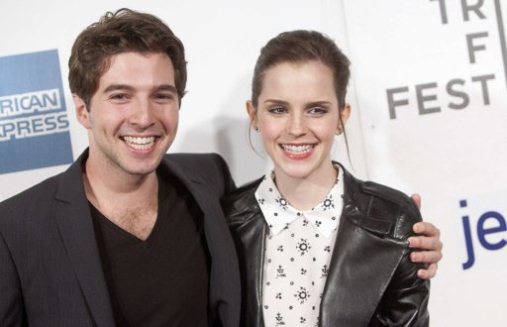 Actor Roberto Aguire (L) and actress Emma Watson arrive for the world premiere of "Struck by Lightning" as part of the Tribeca Film Festival in New York April 21, 2012.