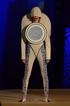 A model presents a creation from the collection of Margarite Lukinets during the "Pygmalion" fashion competition for local young designers in Russia's far eastern port of Vladivostok April 21, 2012.