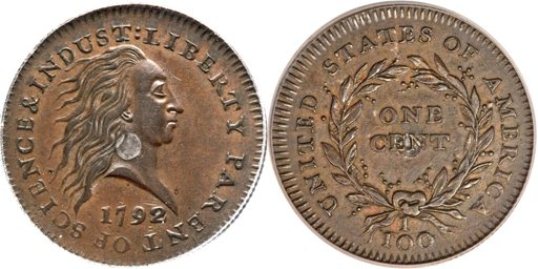 This photo combination made with images provided by Heritage Auctions shows the front and back of a copper and silver 1792 experimental penny that sold at auction in Schaumburg, Ill. on Thursday, April 19, 2012. Officials with Heritage Auctions say Kevin Lipton of Beverly Hills, Calif., bought the penny on behalf of a group of unnamed investors for $1 million and must also pay the auction house's 15 percent commission. It was never actually put into circulation and only 14 examples of the coin are known to exist.