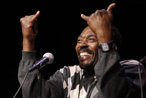 Rodney King reacts to the audience as he says he was "One of the Lucky Ones" because his incident was caught on video while participating in a discussion for his memoir book titled "The Riot Within: My Journey from Rebellion to Redemption" at the Los Angeles Times Festival of Books on the campus of the University of Southern California in Los Angeles April 21, 2012.