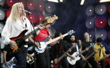 Spinal Tap are joined by Metallica on stage at the Live Earth concert at Wembley Stadium in London, July 7, 2007. Former U.S. vice president Al Gore and his global partners are staging the Live Earth concerts held on seven continents simultaneously to raise awareness of environmental issues.