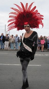 A reveler take part in the annual Pride Parade parade in Brighton as thousands of people line the streets to watch a colorful procession celebrating thethe gay, lesbian, bisexual and transgender community, Saturday, Aug. 7, 2010 in Brighton, Engalnd.