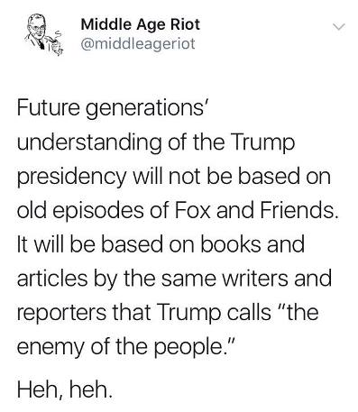 The warehouse will stay in my city until the tax breaks run out, and they'll hire as many people as they lose, which is about 30 percent of their employees a year. Working people know never to take a job at a place that's always hiring because there's a reason they're always hiring, and it's not that the employees keep dropping dead of sheer happiness. The Trump administration is always hiring, and the regular working people know why.