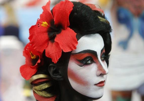A model displays a body art creation during the International Contest of Hairdressers, Nail and Body Art Designers in St. Petersburg September 28, 2013.