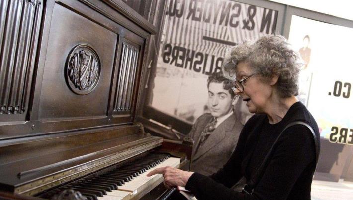 Linda Emmet, the daughter of musician Irving Berlin, plays on her father's piano at the Red Star Line museum in Antwerp, Belgium on Thursday, Sept. 26, 2013. The newly opened museum tells the universal story of migration based on the stories of actual Red Star Line passengers. Between 1873 and 1934, the Belgian shipping company Red Star Line transported approximately 2 million people from Antwerp to New York, many in pursuit of the 'American Dream'. Among the two million Europeans who traveled to America on the Red Star Line was a five year old boy from Russia. The boy's name was Israel 'Izzy' Beilin. He would grow up to gain world-wide fame as Irving Berlin with songs like 'White Christmas', 'Puttin' on the Ritz' and 'There's No Business Like Show Business'. The piano was donated to the museum by the family.
