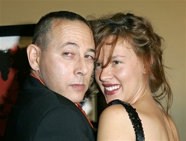 Actors Paul Reubens and Paz de la Huerta pose during arrivals at the premiere of 'The Tripper,' Friday night, Oct. 13, 2006, in the Hollywood area of Los Angeles.