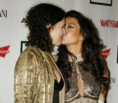 Actress Lindsay Lohan (R) greets friend Rumer Willis, daughter of actors Demi Moore and Bruce Willis, with a kiss as they arrive for the American Cinematheque annual benefit gala in Beverly Hills, California October 13, 2006. Actor George Clooney will receive the 21st American Cinematheque Award at the gala.