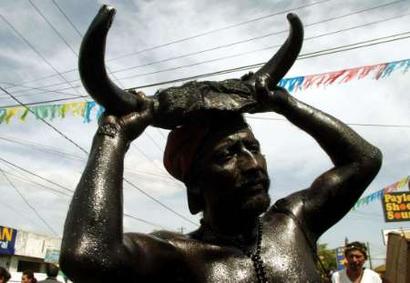 A relever disguised as the devil takes parts in celebrations honoring the patron saint of Managua, Santo Domingo de Guzman, in the Nicaraguan capital, August 4, 2004. Thousands take part in the annual revelry which combine pagan pre-hispanic beliefs with Catholic religious ceremony, over a two-day period.