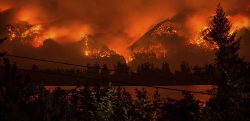 The 16-square mile (41-square kilometers) fire east of Portland forced hundreds of home evacuations. Embers from the fire drifted in the air across the Columbia River - sparking blazes in neighboring Washington state.